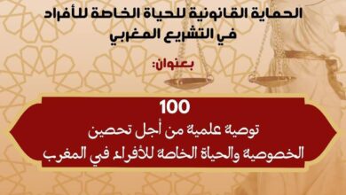 100 توصية ونتيجة حصيلة الندوة الوطنية الموسومة ب ” الحماية القانونية للحياة الخاصة للأفراد بالمغرب”.