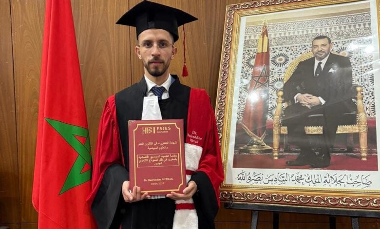بميزة مشرف جدا مع التوصية بالنشر بدرالدين مطراق ينال شهادة الدكتوراه في العلوم القانونية والسياسية