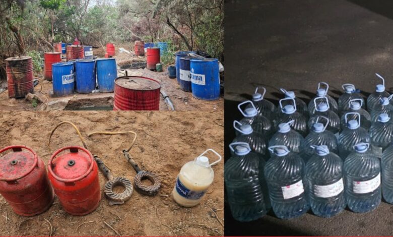 وقد أسفرت عملية الضبط والتفتيش المنجزة عن تفكيك ورشة كان يستغلها المشتبه به لتقطير المشروبات الكحولية، حيث تم حجز 501 لترا من مسكر ماء الحياة و6200 لترا من السوائل المخمرة التي تستعمل في إعداده، علاوة على مجموعة من المعدات والأواني التي تستخدم في هذا النشاط الإجرامي.