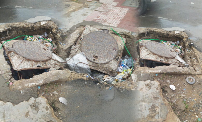 الجديدة.. بالوعة مهملة بتقاطع شارعي مولاي رشيد ولسان الدين الخطيب تهدد سلامة المارة