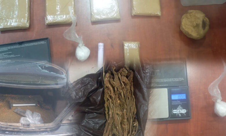 وقد مكنت عملية التفتيش من حجز كميات مهمة من مخدر الشيرا، إلى جانب كميات من الكيف على شكل سنابل، وأوراق التبغ المعروف محليا بـ”طابا”، فضلا عن ميزان إلكتروني يرجح استعماله في عملية الوزن والترويج.